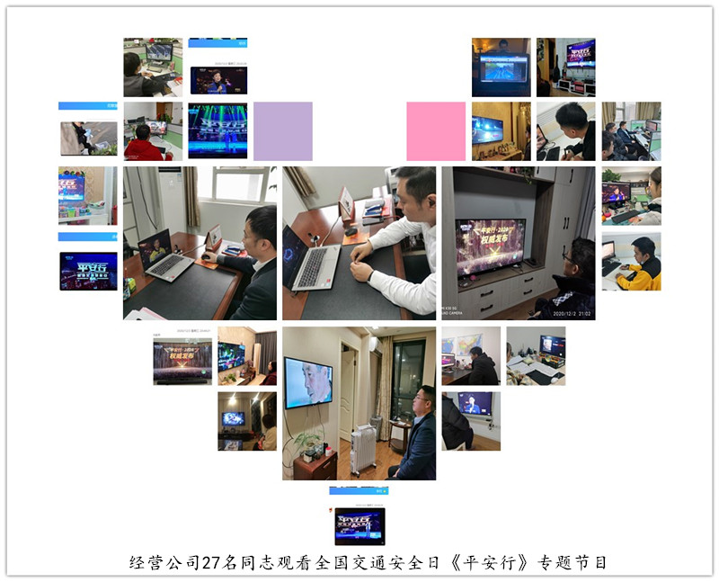 2020年12月2日是以“知危險會避險、安全文明出行”為主題的第九個全國交通安全日,為進一步提升全體路橋員工的交通安全意識,引導大家爭做文明出行人,倡導交通安全正能量,湖北路橋組織各單位、各項目觀看2日和3日的“平安行-2020年全國交通安全日”電視節目。