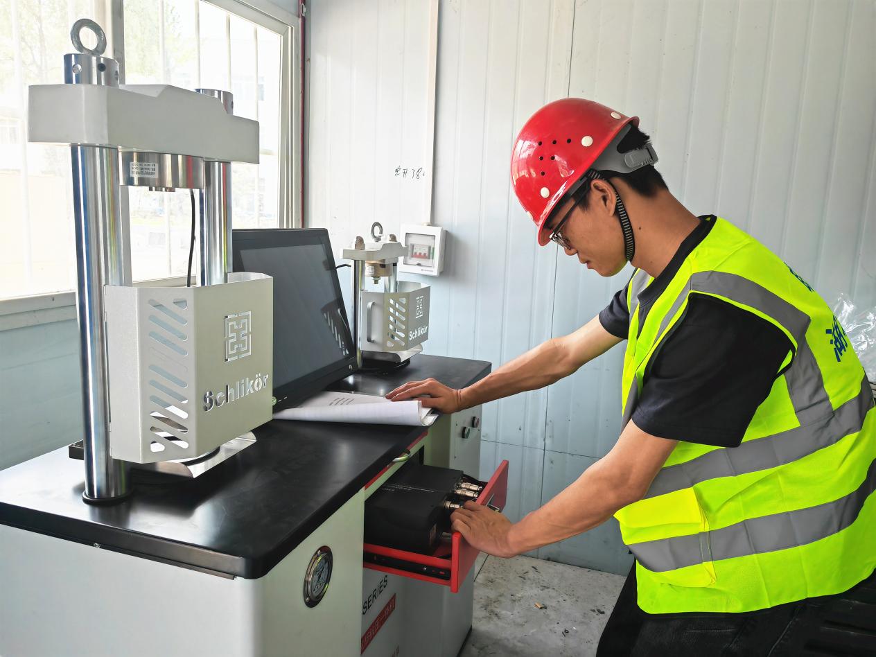 圖:李袁杰在檢查標志基礎外觀尺寸
